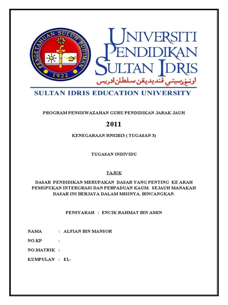 Muka Depan Assignment Upsi / Muka Depan Assignment Upsi